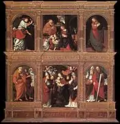 - en el inferior: Madonna con el Niño y los santos Ambrosio , Agabio y otro santo