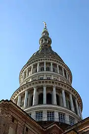 ![]() Vistas del campanario y la torre-cúpula de la basílica, dominando la silueta de la ciudad de Novara | ||