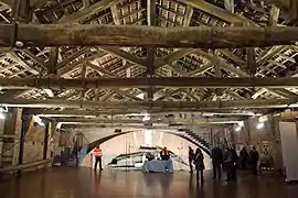Saliendo a través de la torre del campanario se puede acceder al bajotecho del ábside de la iglesia y luego a la "Sala del Compás" ("Sala del Compasso"), que conserva el antiguo compás utilizado por Antonelli para dibujar a escala 1:1 las curvas de los anillos que soportan la cúpula.