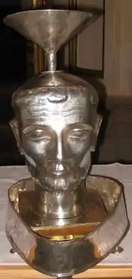 El relicario, una cabeza de plata, presenta orificios en la parte superior e inferior. Utilizando un embudo aplicado al agujero superior, el agua es vertida para ser recogida y empleada como remedio contra las plagas más habituales en el entorno agrícola así como en algunas enfermedades.