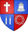 Acuartelado, el primero de gules con una cruz latina de plata, el segundo de azur con una campana de plata, el tercero de azur con dos cirios de plata y cuarto de gules con la corona de espinas de plata y tres clavos, también de plata.