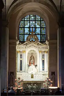 Los muros alrededor de la capilla dedicada a Nuestra Señora están cubiertos de exvotos en forma de placas de mármol grabadas. Los exvotos colgados se prohibieron pero los fieles laicos depositaban flores y se comprometían ante la estatua de la Virgen a realizar algún buena acción si les concedía el favor pedido.[33]