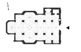A lo largo de la nave hay un friso con triglifos y capiteles y está coronada por un cornisa con dentículos a lo largo de la nave, crucero y coro. La nave está cubierta por grandes lucernarios dispuestos por parejas: uno por cada tramo entre la nave y el coro y otro para los tramos al este y al oeste de cada crucero.[57]