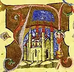 G = iglesia mayor – la basílica, sin destrucciones - Johan Sibmacher: "Verdadera imagen de la ciudad real de Stu(h)lweis(s)enburg (Székesfehérvár), como fue conquista por los cristianos, año 1601" –