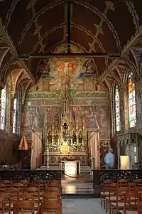 Durante el siglo XIX, las sucesivas campañas de renovación dieron a la capilla su aspecto final neogótico, con sus características decoraciones murales. Las vidrieras del coro datan de 1845[4] y representan a los soberanos que reinaron en el condado de Flandes desde Felipe II, duque de Borgoña, hasta la archiduquesa María Teresa de Austria, emperatriz del Sacro Imperio Romano Germánico