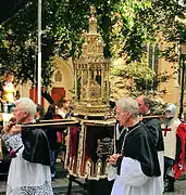 - Reliquia de la Santa Sangre portada a hombros durante la procesión.