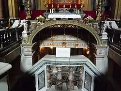 La amplia cripta bajo el altar mayor, construida por Luigi Carimini en 1869-71, reúne los restos de los apóstoles Felipe y Santiago, junto con las reliquias de algunos otros mártires y las tumbas de la familia Riario, en su tiempo propietarios del presbiterio. Las pinturas al temple del deambulatorio están inspiradas en las catacumbas de san Calixto y de Domitila.