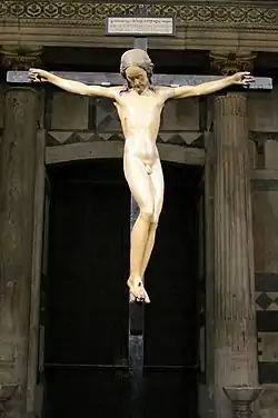 Miguel Ángel fue huésped del convento cuando tenía diecisiete años de edad, después de la muerte de Lorenzo de Médici, su protector. Aquí pudo hacer estudios anatómicos de los cadáveres provenientes del hospital del convento; a cambio de esto, esculpió un crucifijo de madera, que fue colocado sobre el altar mayor. Actualmente se encuentra ubicado en la sacristía.