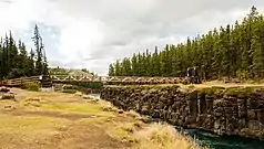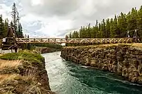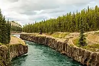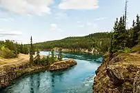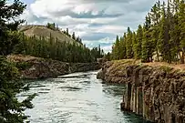 La mejor exposición de las rocas volcánicas y de fácil acceso es en un área donde el río Yukón pasa por una serie de canales al sur de Whitehorse. Durante la primavera, también se pueden observar los basaltos en río abajo dique del río Yukon en Whitehorse, que se creó para extraer energía de las cataratas conocidas como White Horse Rapids. Estos rápidos así com el cañón Miles fueron un aténtico desafío para los buscadores de oro que seguían la fiebre del oro de Klondike, y también estableció el punto final de los barcos de vapor río arriba. Esto fue el motivo por el que se creó el asentamiento de Closeleigh, que finalmente daría lugar a la ciudad de Whitehorse.