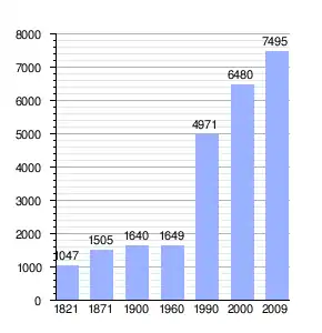 Gráfica de evolución población de Bascharage entre 1821 y 2009 |