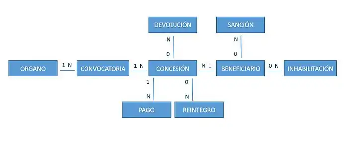 Las principales entidades de información recogidas en la BDNS son las siguientes: