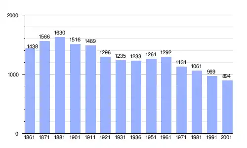Gráfica de evolución demográfica de Bastida Pancarana entre 1861 y 2001 |