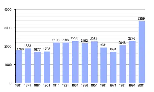 Gráfica de evolución demográfica de Bastiglia entre 1861 y 2001 |