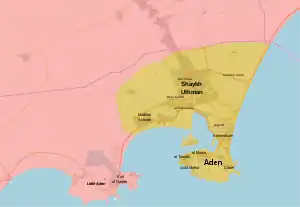![]() Situación de Adén durante la batalla. | ||||