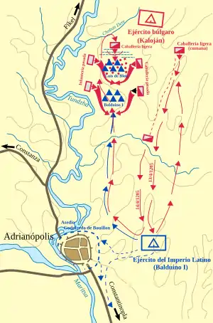 Resultado | Decisiva victoria búlgara y captura del emperador latino Balduino I | |||