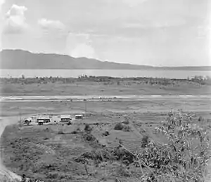 ![]() Pista de Laha en 1945. En el fondo se ve la península y bahía de Ambon. | ||||