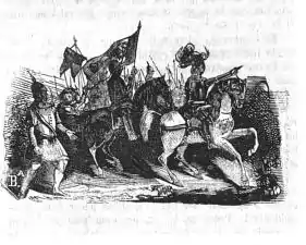 ![]() Una hueste castellana del tiempo de Pedro I, en un grabado del siglo XIX. | ||||