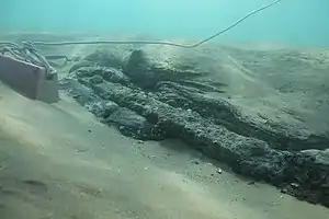 ![]() Restos probables del brulote francés De Marsay, localizado en 2015 cerca de la costa de Sitges. El brulote se hundió durante la batalla, después de haber sido dirigido contra el galeón español La Magdalena y haber acabado desviado hacia el francés Galion-de-Guise, al que prendió fuego. | ||||