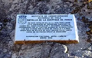 Los españoles estaban perdiendo muchas vidas y pertrechos, hasta que Alonso de Reynoso tuvo la idea de subir a una altura mayor que la de los mapuche, operación llevada a cabo por el y una veintena de hombres más, entre ellos el capitán Ñuño Hernández[4] y el cronista Alonso de Ercilla y Zúñiga. Luego de llegar a donde querían, atacaron a los mapuche desde las alturas mediante arcabuces.