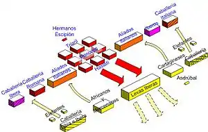 - Asdrúbal se enfrentó a dos comandantes competentes y cohesionados, los hermanos Escipión. Su hermano luchó contra el impetuoso Cayo Terencio Varrón, al cual le correspondía el mando.