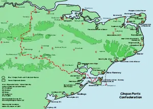 Durante la Primera Guerra de los Barones, los barones rebeldes habían pedido al príncipe Luis de Francia que tomara el trono de Inglaterra en reemplazo del rey Juan. En 1216, Luis había desembarcado en Inglaterra y capturado Hastings, New Romney, Hythe y Sandwich, que junto con Dover constituían los llamados Cinco Puertos, una serie de ciudades costeras en el sureste inglés confederadas para su defensa. En esta última ciudad, de Burgh mantenía la resistencia contra un asedio desde hacía varios meses.