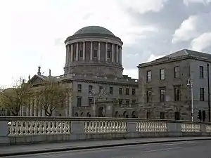 ![]() El edificio de Four Courts, incendiado durante la batalla, el 30 de junio de 1922. | ||||