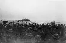 ![]() Soldados británicos disparan a un avión alemán. La aviación alemana ametralló y bombardeó a las tropas que esperaban transporte en las playas. | ||||