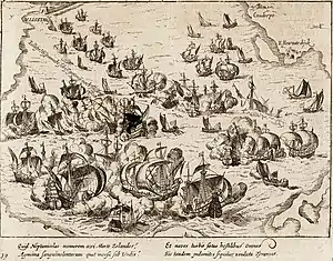 El 17 de abril de 1573 una flota española dirigida por Sancho Dávila, con la intención de recuperar Flesinga, se enfrentó a los barcos de los rebeldes holandeses, bajo el mando de Lieven Keersmaker. Estos abandonaron inicialmente el combate, pero regresaron cuando la flota española fue batida por la artillería de la ciudad. Cinco barcos españoles se perdieron, el resto consiguió alcanzar las ciudades de Middelburg y Arnemuiden.