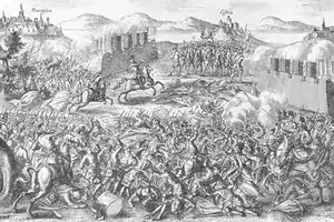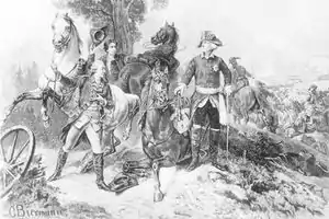 ![]() Federico II a punto de ser capturado por los cosacos. Obra de Bernhard Rode. | ||||