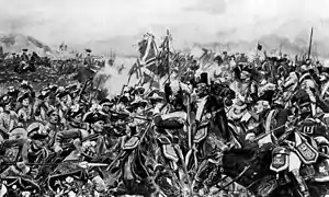 Ante la resistencia de la infantería anglo-hanoveriana, los franceses organizaron una nueva carga. Dieciocho escuadrones de la caballería[11] de élite francesa, considerada la mejor del mundo, cargaron con la intención, no de dar una carga frontal, sino de golpear el flanco izquierdo y la retaguardia de las tropas de von Spörcken.