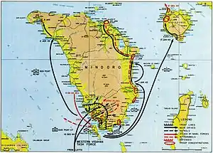 Las fuerzas japonesas en Mindoro eran escasas, y fueron eliminadas en tres días. El ejército estadounidense fue asistido durante la campaña por guerrillas de la población filipina local.