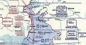 En consecuencia, la frontera entre el Frente bielorruso y el Frente del Oeste soviético se reunió en el Sur, lo que permitió a los dos «nuevos» ejércitos empezar una maniobra en tenazas hacia Dúbrovka y alrededor de Briansk, obligando a las fuerzas alemanas a batirse en retirada.[22]