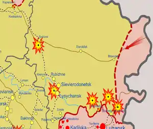 Los enfrentamientos iniciales cerca de Starobilsk se informaron el 24 de febrero de 2022.[1] El 25 de febrero de 2022, las Fuerzas Armadas de Ucrania afirmaron haber destruido una columna de soldados rusos que se habían preparado para cruzar el río Aidar.[2] La afirmación no se ha verificado de forma independiente.
