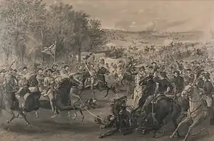 ![]() Ataque de la caballería confederada durante la batalla | ||||