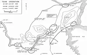 Las fuerzas chinas estaban formadas por el 4.º Ejército, el 74.º Ejército de élite, el 66.º Ejército, la 187.ª División, la 91.ª División, la nueva 13.ª División, la 142.ª División, la 60.ª División, la 6.ª División de reserva, la 19.ª División, una brigada de la 139.ª División y la nueva 15.ª División, que hacían un total de 100.000 hombres. El comandante en jefe en la línea del frente era el comandante del 9.º Grupo de Ejércitos Wu Qiwei. Estaban bajo el mando general del comandante supremo de la 9.ª Región Militar Xue Yue.