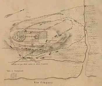 Tras la declaración de guerra a la Argentina por parte del presidente paraguayo Francisco Solano López,[1] éste envió sobre territorio argentino dos columnas de ataque: una de ellas, comandada por Wenceslao Robles, ocupó la ciudad de Corrientes el 14 de abril de 1865; la segunda, formada por unos 12 000 hombres y comandada por el teniente coronel Antonio de la Cruz Estigarribia, se dirigió hacia el este de esa provincia para atacar territorio brasileño sobre el río Uruguay.