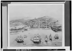 El 9 de julio de 1846, el USS Portsmouth, capitaneado por el comandante John B. Montgomery, navegó hacia la Bahía de San Francisco, con las intenciones de capturar el pueblo de Yerba Buena. A bordo de esta nave habían 220 navegantes y hombres ensillados, junto con un contingente de 27 marinos. La pequeña fuerza mexicana resguardada en el Presidio no disparó ante el USS Portsmouth, por miedo a que fueran fácilmente vencidos. El Portsmouth se detuvo a distancia de la orilla y un grupo de navegantes, soldados y marinos así como Montgomery y su gente, desembarcaron en botes hacia Yerba Buena Al arribo a tierra de los estadounidenses, los soldados mexicanos sostuvieron el fuego y los habitantes de California se reunieron para ver a la fuerza americana. Montgomery y su tripulación caminó hacia donde se encontraba una bandera mexicana en la plaza principal. La quitó y colocó una bandera estadounidense, argumentando que Yerba Buena pertenecía a los Estados Unidos. Después del discurso de Montgomery, ordenó el desembarque del restante de la tripulación para tomar el Presidio de San Francisco y confiscar cualquier tipo de arma o munición disponible. De esta manera, el pueblo de Yerba Buena, y la tierra que se convertiría tiempo después en lo que conocemos como San Francisco, fue capturado por los Estados Unidos.