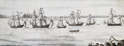 Jersey (gundalow, 3) | Capitán Grimes[52] | Abandonado Recuperado por los británicos. |