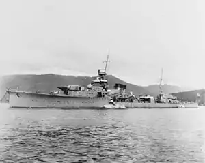 El crucero japonés Yubari, nave insignia del contralmirante Kajioka.