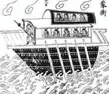 - La naturaleza exacta de estos barcos tampoco está clara. Zhang (2006:218) se refiere a ellos como «buques de guerra forrados de cuero», pero esta referencia está entre paréntesis porque esta cuestión es periférica en la cuestión del papel jugado por Zhang. En una descripción más extensa, de Crespigny (2004:266-268) separa los dos términos, describiendo mengchong como «… cubiertos con algún material de protección… usados para romper la línea de batalla de enemigo o dañar sus barcos y hombres con un ariete o con proyectiles» y doujian como «…plataformas de combate de lanceros y arqueros para combates cuerpo a cuerpo…».(de Crespigny, 2004, p. 268) Llega a la conclusión de que mengchong doujian es una «descripción general para buques de guerra». (de Crespigny, 2004, p. 265)