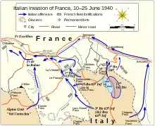 La invasión italiana de Francia, también conocida como la Batalla de los Alpes, fue un conflicto bélico que marcó la entrada del Reino de Italia en la II Guerra Mundial, y fue la última operación de la contienda más grande entre la Tercera República Francesa y el Tercer Reich, que culminó con una victoria alemana.