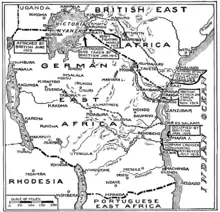 ![]() Vista del lago Tanganica, pretendido por británicos, belgas y alemanes. | ||||