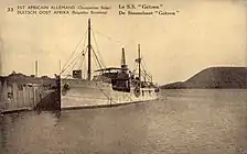 Mientras tanto, los británicos habían proporcionado a los belgas cuatro hidroaviones de flotadores Short Type 827 para atacar al Götzen en Kigoma. Se realizaron varios bombardeos, pero sin que lo supieran ni los británicos ni los belgas, su comandante, Paul von Lettow-Vorbeck, le ordenó a Zimmer que eliminara la mayor parte del armamento del Götzen, incluido el cañón de tiro rápido de 105 mm recuperado del Königsberg, que se envió para ser usado por el ejército en el campo de batalla.[66] Se montaron maniquíes de madera para mantener la ilusión de una nave fuertemente armada. Kigoma cayó ante las fuerzas del general Charles Tombeur el 28 de julio, durante la ofensiva de Tabora, pero el Götzen ya se había ido. Los alemanes dirigieron el barco hacia el sur de la bahía de Kigoma y, después de haber engrasado sus motores por completo para el caso de que pudieran volver a utilizarlo, lo llenaron de arena y lo hundieron con cuidado el 26 de julio a una profundidad de 20 m, cerca de la orilla de la bahía de Katabe (designación belga: Baie de L'Eléphant; designación británica: Bahía de Bangwe) en la posición 04° 54' 05" S; 29° 36' 12" E.[67]