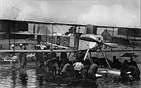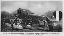 ![]() Reensamblando un hidroavión cerca de la orilla del lago Tanganica.[34] |
