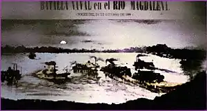 ![]() Óleo de la Batalla del Río Magdalena de Francisco Valiente, 1899 | ||||