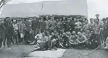 El general Kuroki Tametomo con su Alto Mando, oficiales extranjeros y corresponsales de guerra, tras la batalla.
