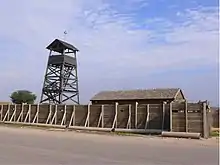 ![]() Torre de agua en Negba, mostrando daños en su superficie. | ||||