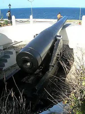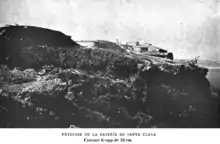 El 7 de mayo de 1898, durante la Guerra hispano-estadounidense, los españoles atrajeron al USS Vicksburg y al US Revenue Cutter Plantilla:USRC para que persiguieran una nave española hasta quedar bajo el alcance de la batería. La batería disparó demasiado pronto contra las naves estadounidenses, las cuales pudieron escapar sin recibir daños.[2] Posteriormente, el 13 de junio, el cañón Krupp disparó contra el crucero protegido (blindado) USS Montgomery a un rango de 9000 metros,[3] sin poder dañar tampoco dicha nave.