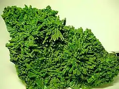 Minerales a los que se encuentra asociado en estos depósitos: olivino, mimetita, malaquita, duftita, cerusita, beudantita, barita, azurita o anglesita.