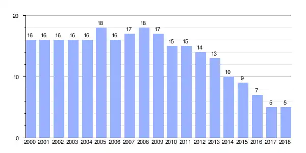 Gráfica de evolución demográfica de Bayobre entre 2000 y 2018 |